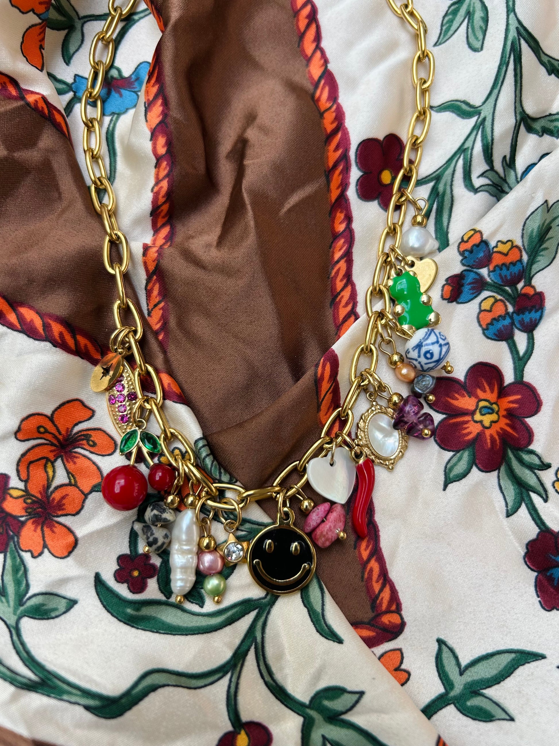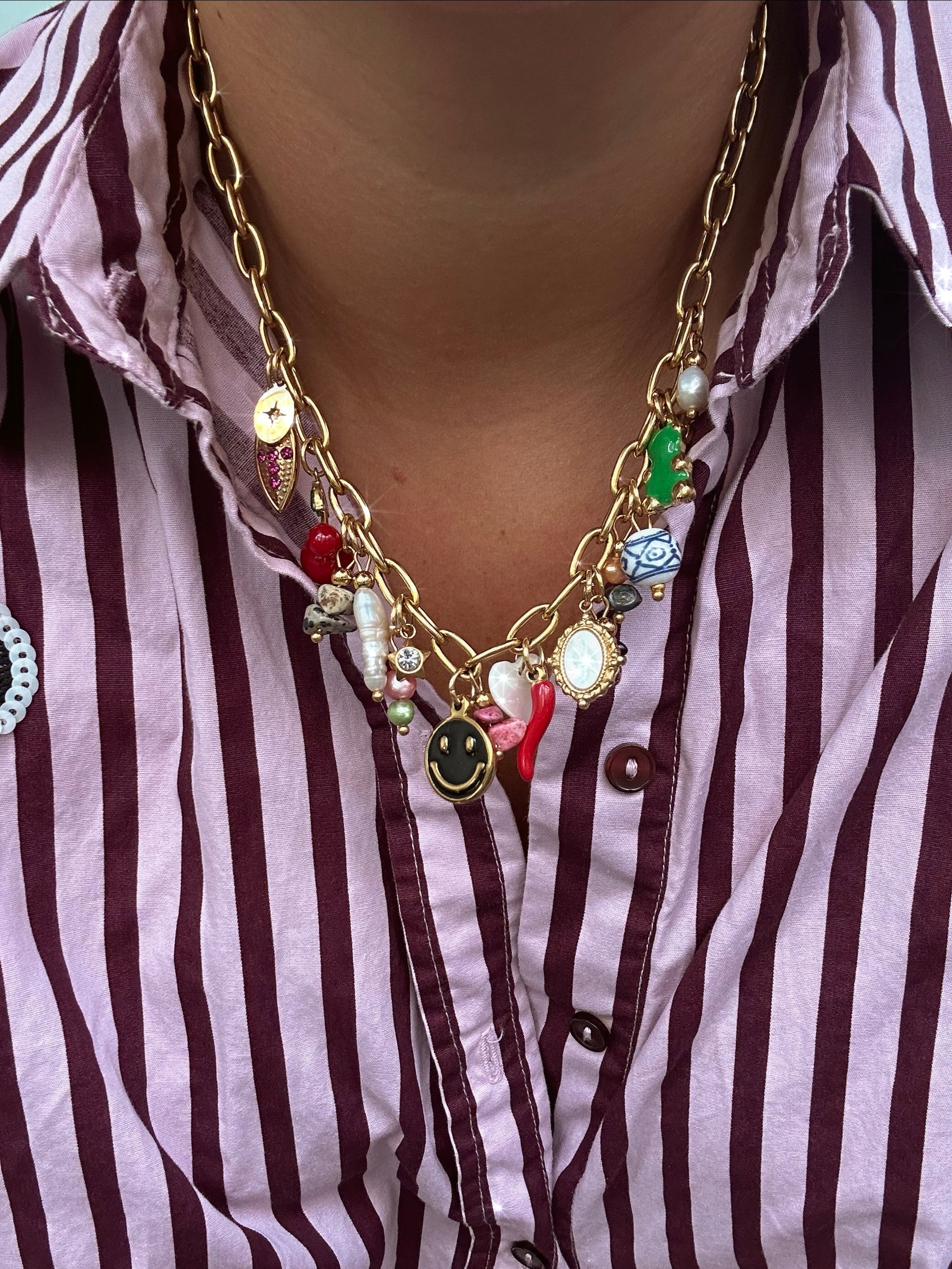 Deze ketting is een set van al onze favoriete bedels! Al het materiaal is roestvrijstaal dus verkleurt niet.