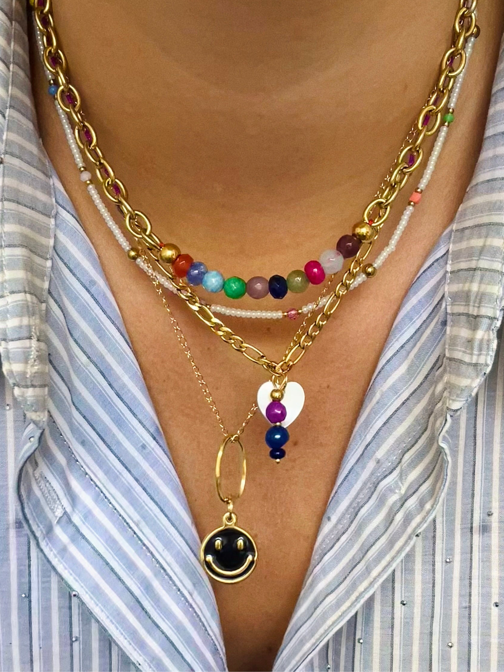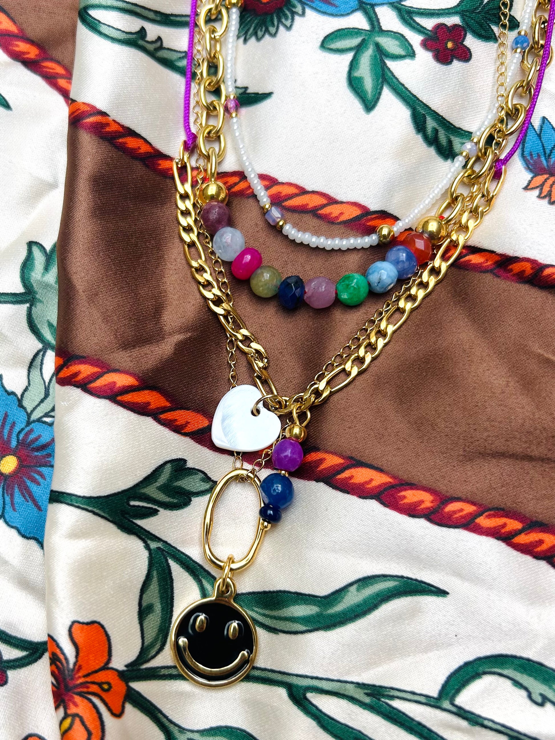 Deze set bestaat uit vier handgemaakte kettingen. Bij elkaar, óf los van elkaar te dragen! Al het materiaal is roestvrijstaal dus verkleurt niet.