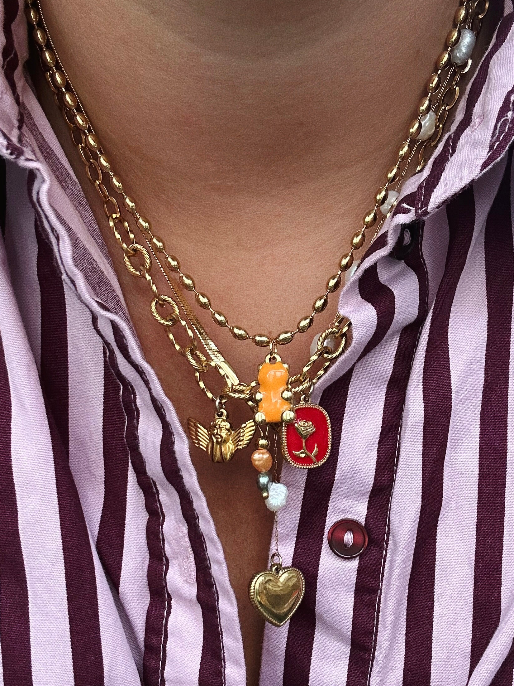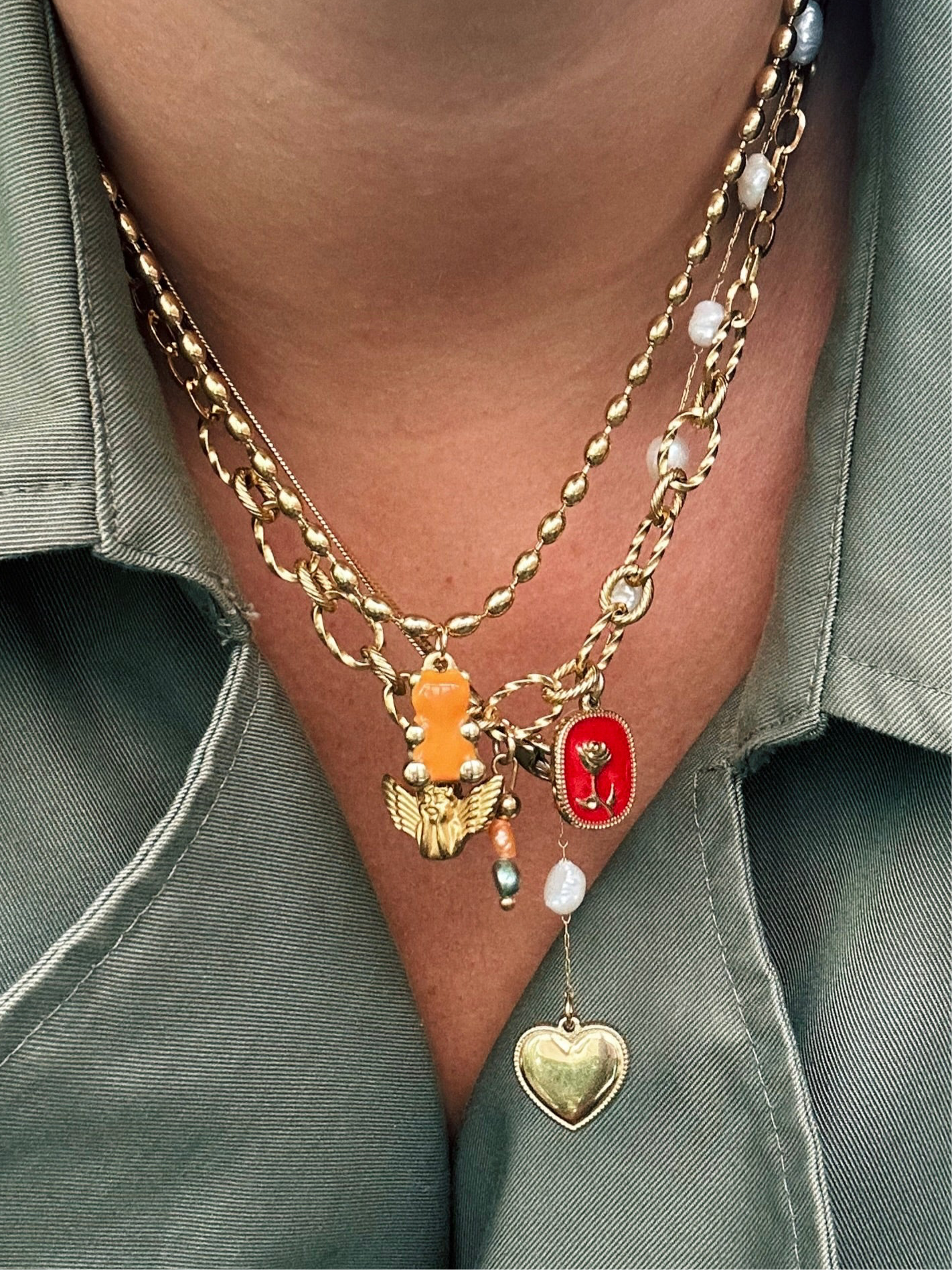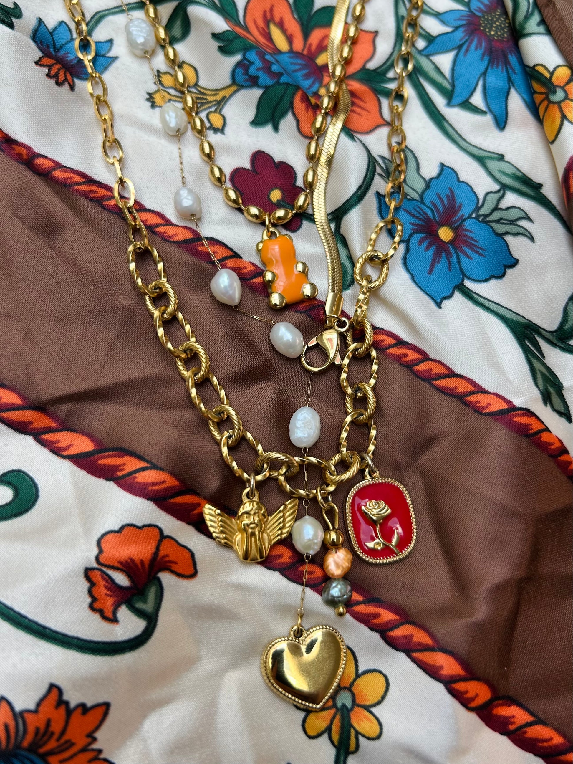 Deze set bestaat uit drie handgemaakte kettingen. Bij elkaar, óf los van elkaar te dragen! Al het materiaal is roestvrijstaal dus verkleurt niet.