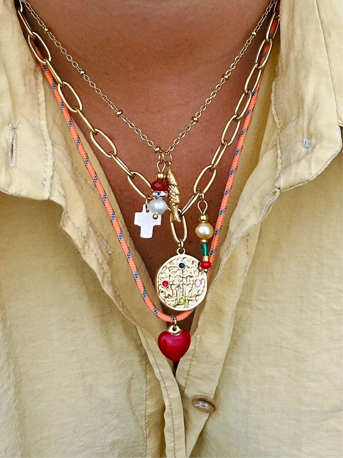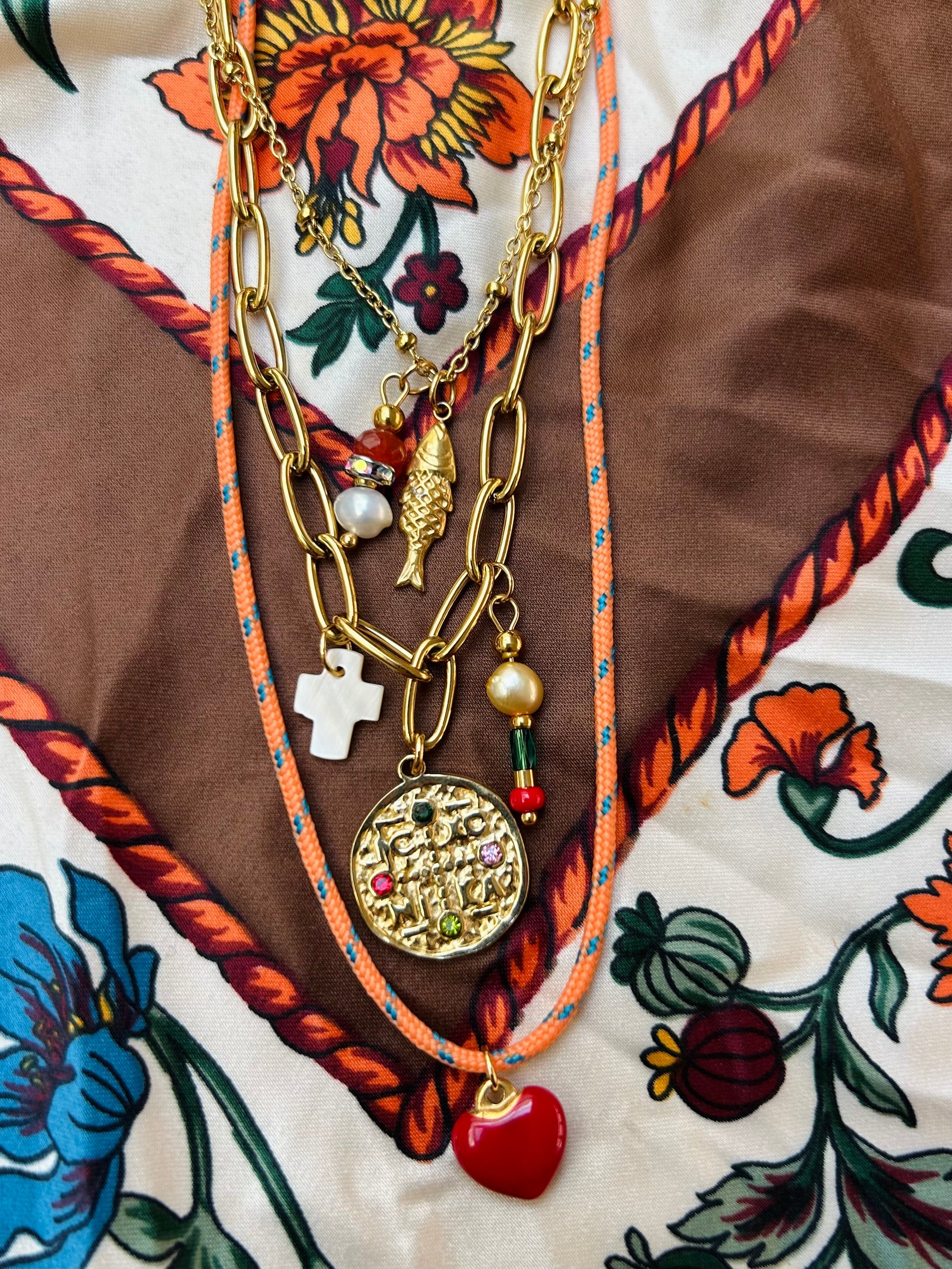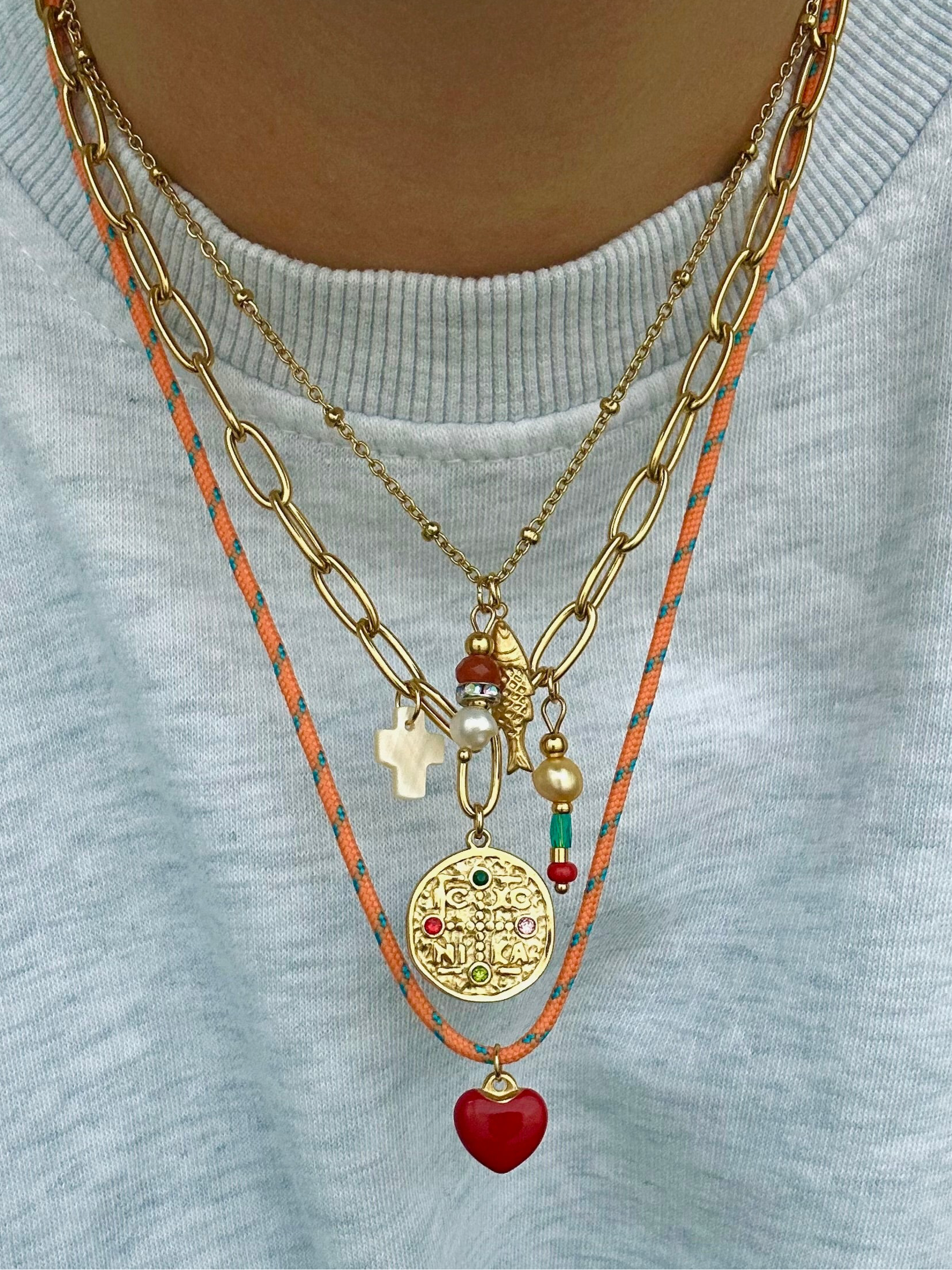Deze set bestaat uit drie handgemaakte kettingen. Bij elkaar, óf los van elkaar te dragen! Al het materiaal is roestvrijstaal dus verkleurt niet.