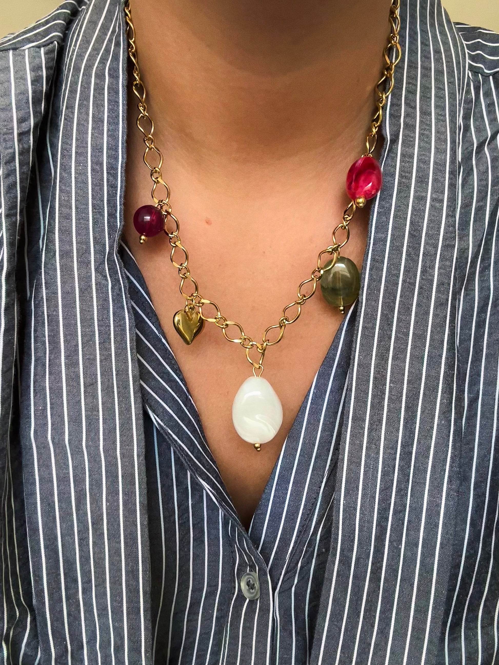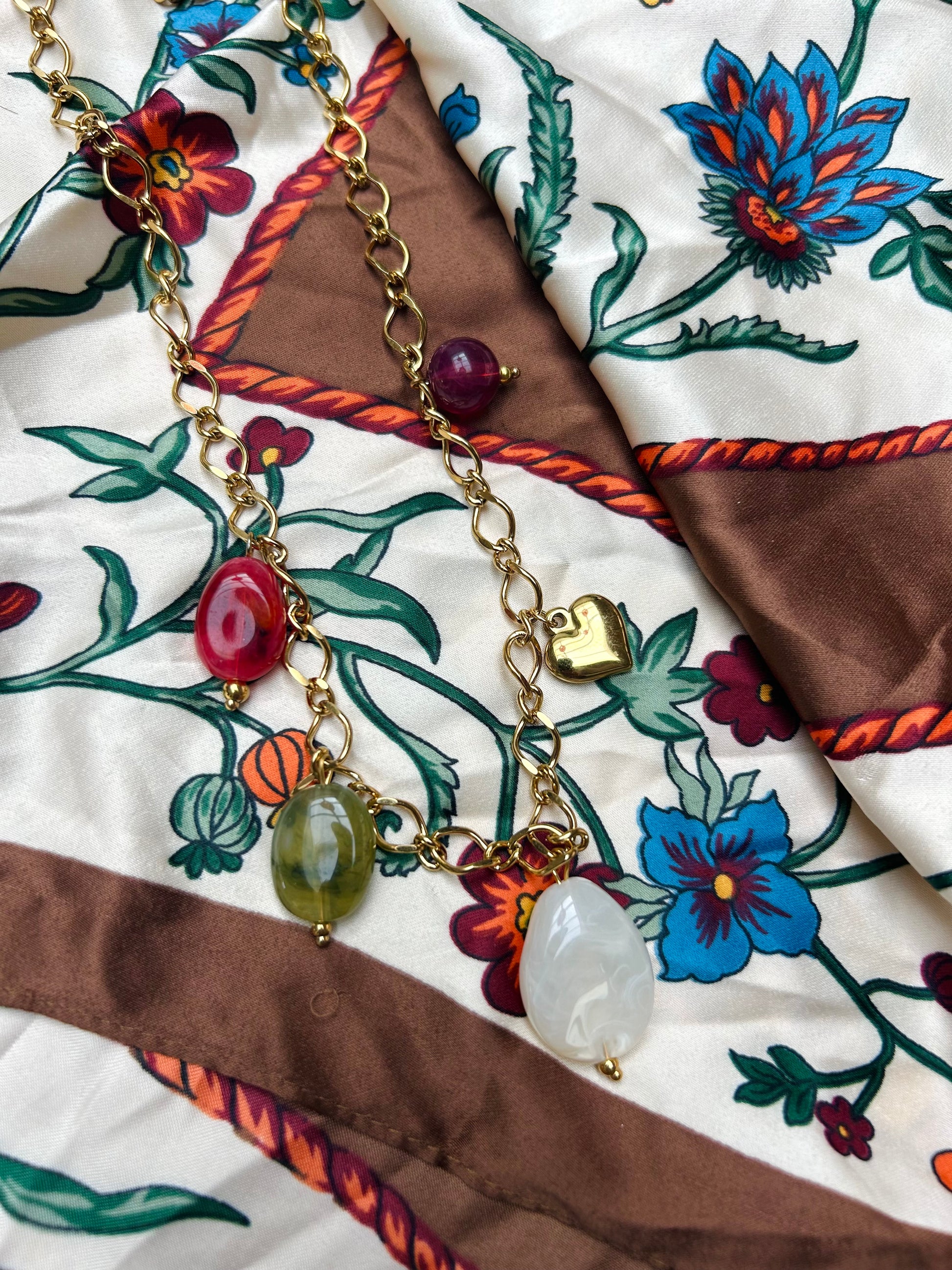 Deze ketting bevat een set van onze stone bedels! Al het materiaal is roestvrijstaal dus verkleurt niet.